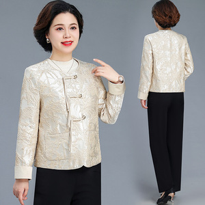 时尚小个子妈妈装新中式秋装外套国风中老年刺绣短款长袖上衣女