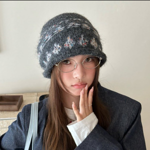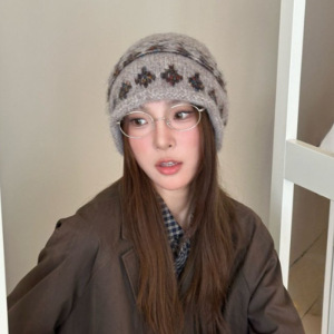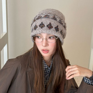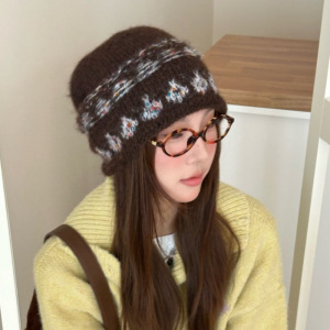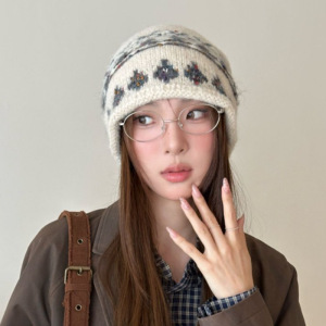 费尔岛风提花针织帽子女秋冬户外显脸小百搭护耳大头围保暖毛线帽