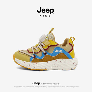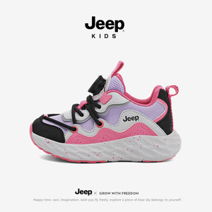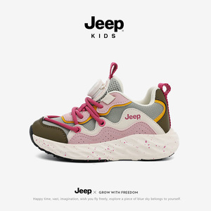 Jeep女童防滑运动鞋2025新款旋钮扣软底跑步鞋秋季时尚百搭休闲鞋