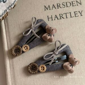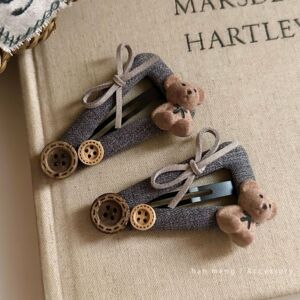 纽扣植绒小熊发夹