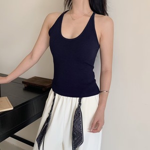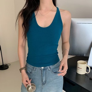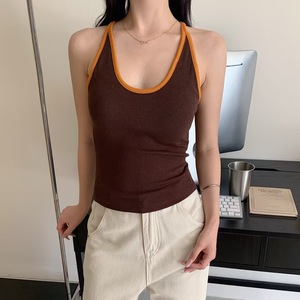 暖小艾588法式挂脖新款辣妹背心女带胸垫纯欲撞色显瘦外穿内搭