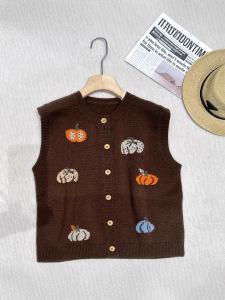 琪镌绘制秋季新款韩系刺绣针织马甲开衫背心女装宽松百搭马甲无袖