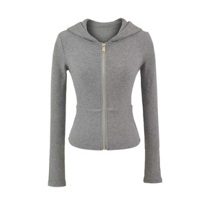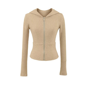 时尚连帽长袖拉链卫衣外套女秋新款辣妹纯色高腰微喇叭裤两件套装