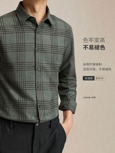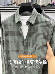 2025冬季羊毛衬衫加厚男士保暖格子休闲商务衬衣新款男式衬衫长袖