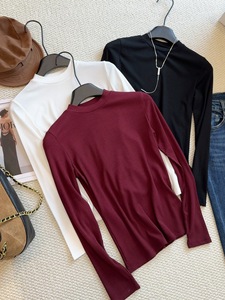半高领打底衫女叠穿内搭立领t恤早秋2025新款修身薄款体恤上衣