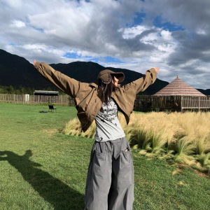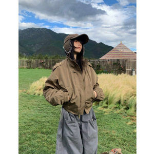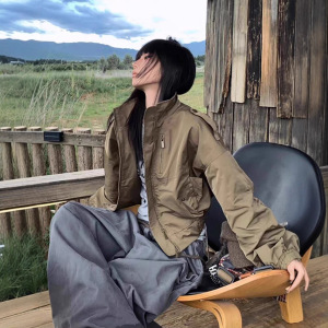 美式复古工装风短款夹克机车外套女早秋季防风宽松立领设计感上衣