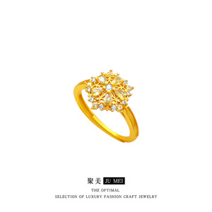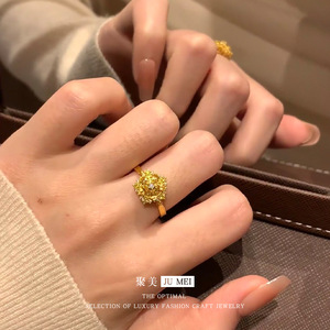 橙光沙金雪花闪钻戒指女精致时尚高级感小众设计个性款食指戒批发