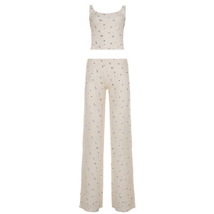 欧美跨境休闲碎花两件套家居套装 纯欲修身吊带+慵懒随性宽松长裤