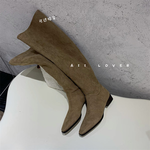 粗跟西部牛仔复古长靴女鞋2025秋冬季新款方头堆堆靴长筒骑士靴子