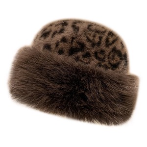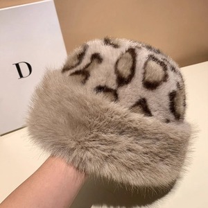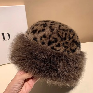 仿皮草貂纹渔夫帽女秋冬季大头围毛绒绒帽子显脸小保暖护耳蒙古帽