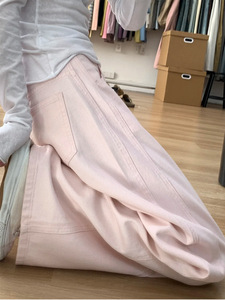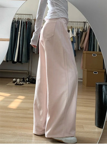 弯刀裤胖mm显瘦裤子女款梨形身材宽松镰刀裤慵懒风粉色阔腿牛仔裤
