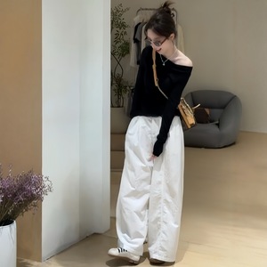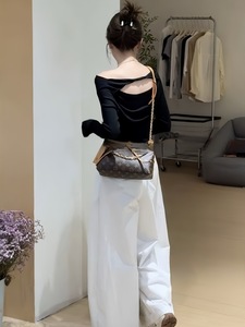 2025早秋新款一字肩后背镂空长袖T恤设计感修身气质百搭气质上衣