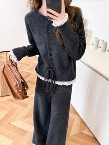 外贸女装新款秋冬季穿搭设计感气质白色针织毛衣半身裙两件套装女