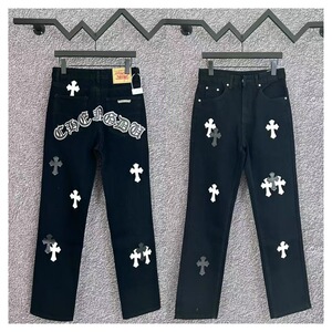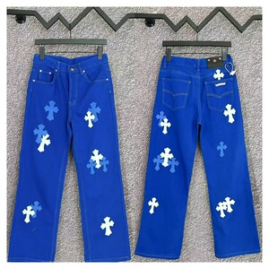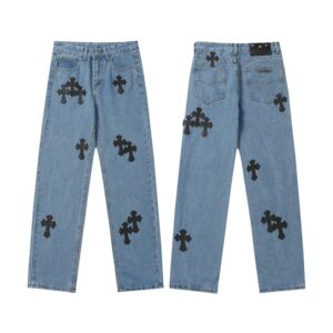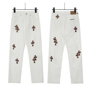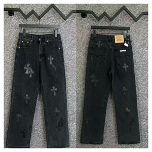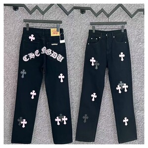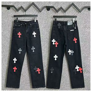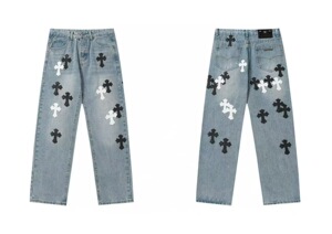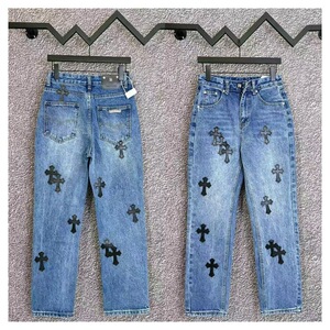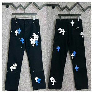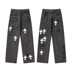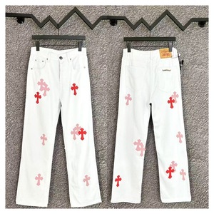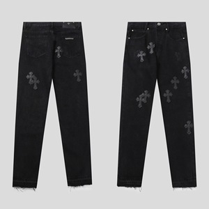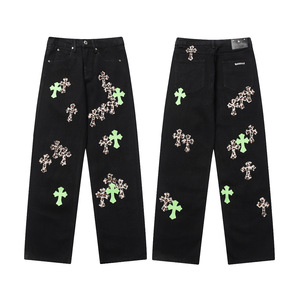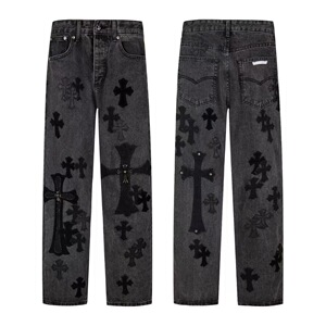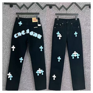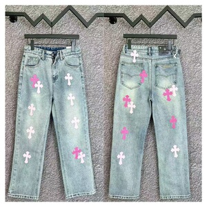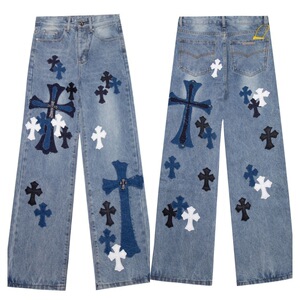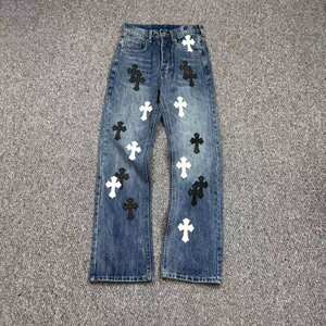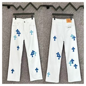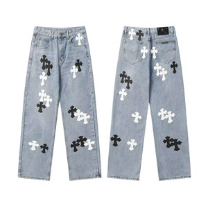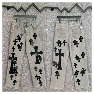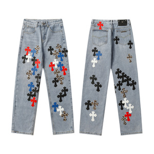 白色高级感十字架牛仔裤男款美式复古痞帅刺绣裤子高街vibe弯刀裤