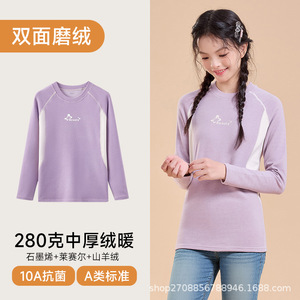 女大童圆领打底衫2025新款秋衣少女初中高中学生青少年保暖上衣冬