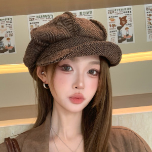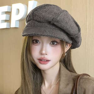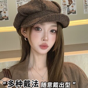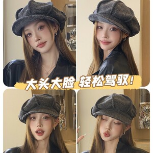 秋冬贝雷帽子女款2025新款百搭云朵八角帽大头围显脸小复古画家帽
