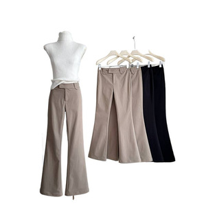 塞纳2025低腰修身显瘦微喇休闲裤垂感秋季复古松紧腰系带直筒裤女