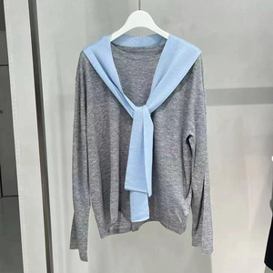 MM披肩圆领长袖针织衫两件套女 2025年秋季新款打底套衫毛衣上衣