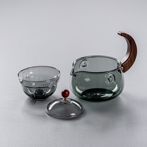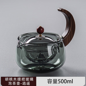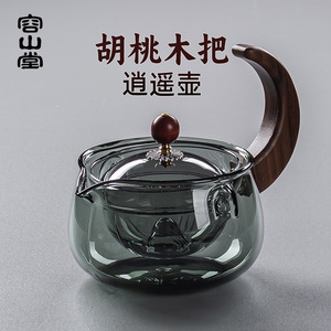 容山堂胡桃木把玻璃泡茶壶2025新款逍遥壶家用功夫茶壶茶漏一体