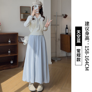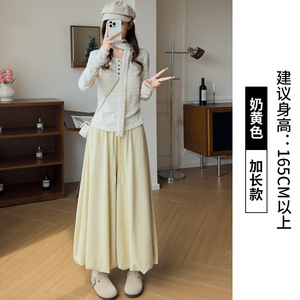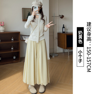 慵懒风糯米花苞裙裤女2025秋季新款休闲高腰小个子宽松阔腿裤