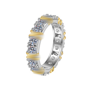 莫桑钻戒指双色交叉X排钻高级感全莫桑石指环925纯银戒子批发跨境