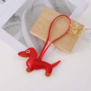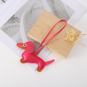 创意腊肠狗钥匙扣挂件卡通宠物包包挂件皮革钥匙链手机包挂饰饰品