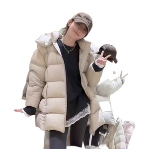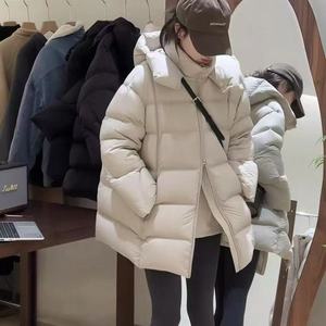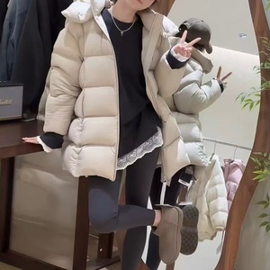 云朵泡芙中长款羽绒服女2025冬季宽松保暖加厚连帽白鸭绒柔软外套