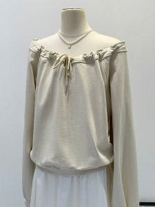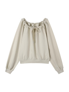 小众设计感抽绳一字领露肩长袖T恤女2025早秋新款超好看气质上衣