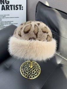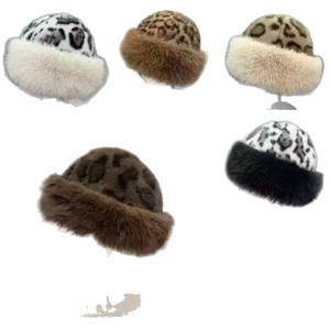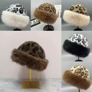 跨境新款时尚豹纹毛毛蒙古帽毛绒帽子女冬季保暖仿貂毛狐狸毛渔夫