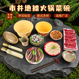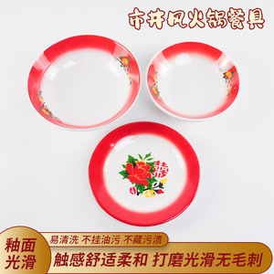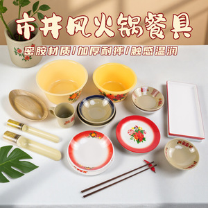 怀旧复古三六九地摊市井火锅餐具碗碟耐摔密胺盘子商用歪胖子同款