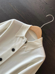智性时装 羊毛正肩POLO翻领衬衫长袖针织开衫外套女秋新款M1674