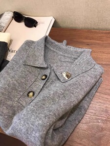 哥家商场同款女装2025秋季冬季打底休闲小刺猬POLO领灰色针织衫