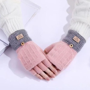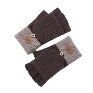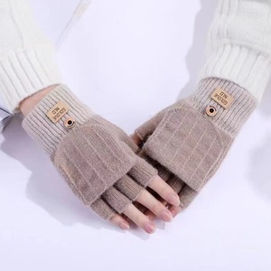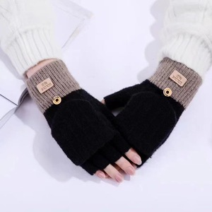 跨境半指翻盖手套防寒骑行可触屏针织手套羊驼绒保暖毛线手套批发