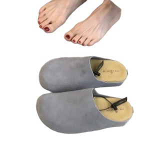 2025早秋新款ins简约反蓝色绒包头穆勒鞋女休闲复古外穿勃肯半拖