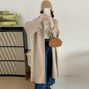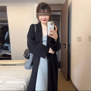秋冬韩里韩气慵懒过膝针织开衫中长款温柔气质外穿宽袖口毛衣外套