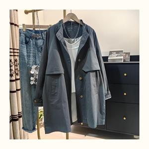 灰色风衣外套女中长款2025秋装新款韩系设计感单排扣立领上衣氨纶
