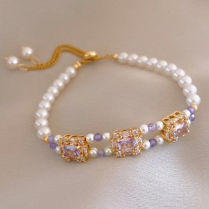 27#珍珠方形锆石手链