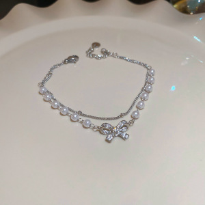 4#蝴蝶结珍珠链条锆石手链