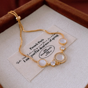 12#圆形锆石贝母手链(真金电镀)