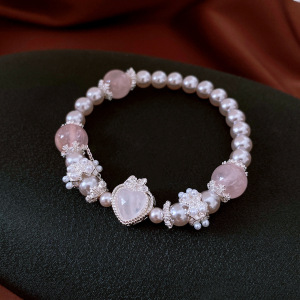 25#珍珠串珠爱心粉晶弹力手链
