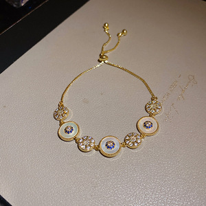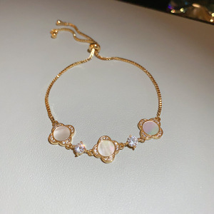 11#花朵锆石圆形贝母手链(真金电镀)