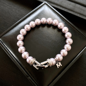22珍珠M字母吊坠卡扣手链
