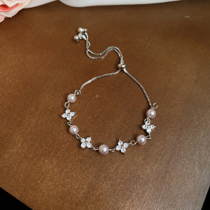 9#锆石花朵珍珠串珠手链