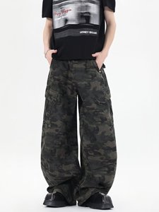 美式复古迷彩工装牛仔裤男百搭宽松阔腿长裤修身显瘦直筒牛仔裤男