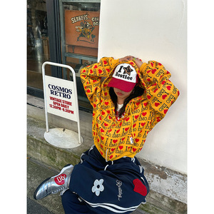 重磅美式复古字母爱心长袖卫衣开衫男女春秋宽松休闲百搭潮流外套
