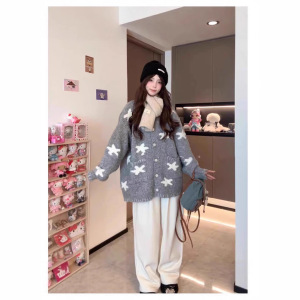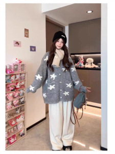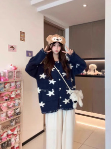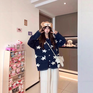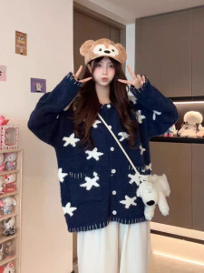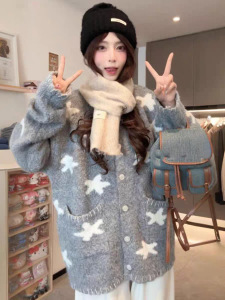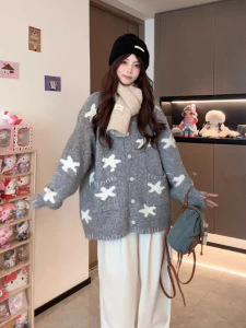 2025新款韩系毛茸茸星星毛衣外套冬季新款慵懒宽松气质百搭针织