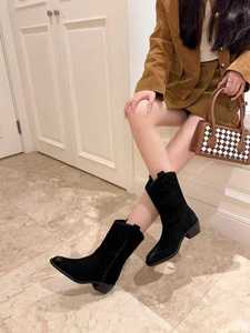 朱朱家骑士靴美拉德2025秋季新显瘦粗跟尖头短靴复古中筒26316