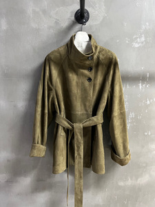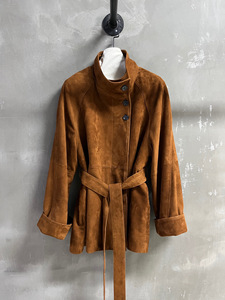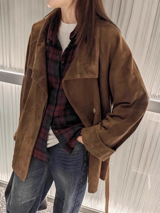 2025秋冬新款绒面皮真皮皮衣麂皮绒复古色腰带反绒皮皮衣外套潮流
