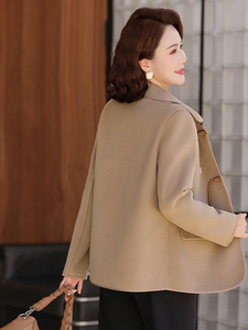 中年妈妈秋装外套2025新款50岁洋气中老年女装春秋短款双面呢大衣