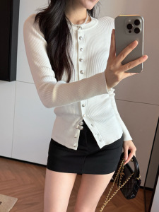 实拍 气质重工单排扣针织上衣女秋冬长袖内搭弹力显瘦毛衣打底衫